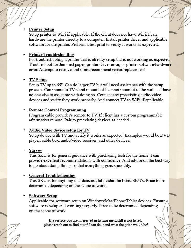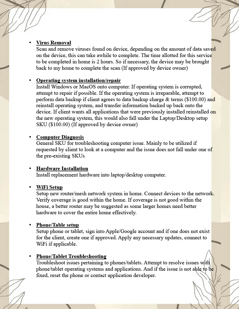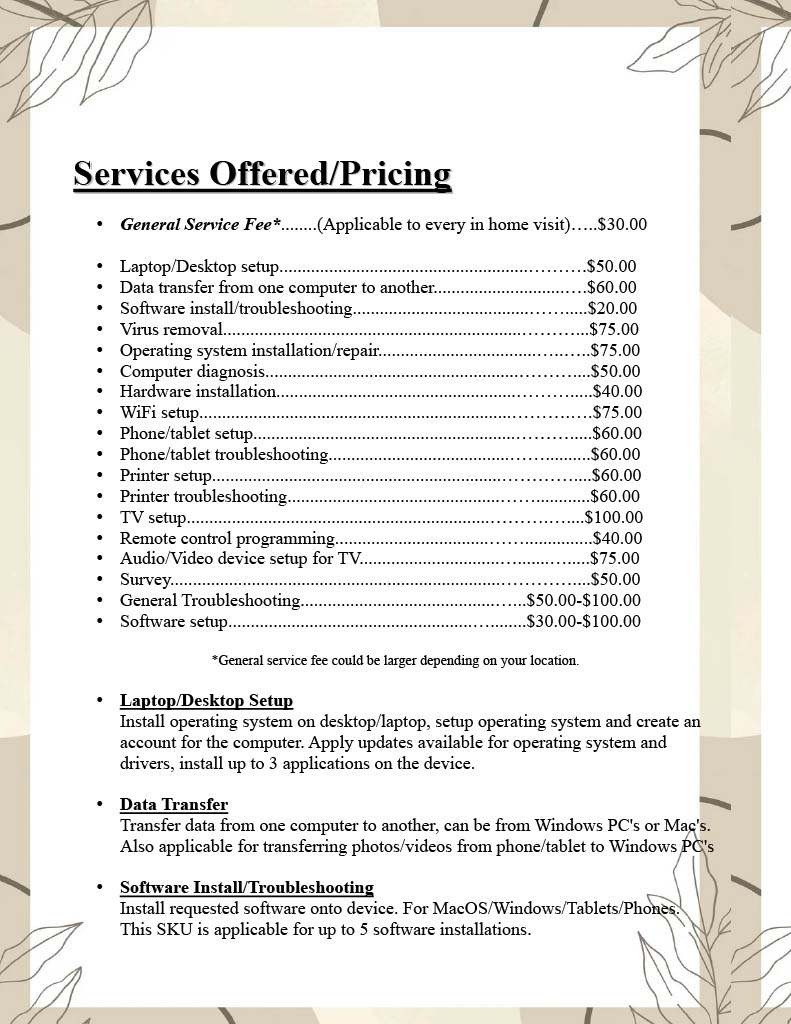 • Services and Prices
